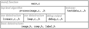 gcc -ggdb -Wall -ansi -DDEBUG \ lineacc.c \ lmap.c \ debug.c \ processimage.c \ testdata.c \ main.c \ -o countcomponentsDas unter dem source listing erwähnte gzip-Archiv enthält ein UNIX shell script cl_all.sh das den obigen gcc-Aufruf ausführt.